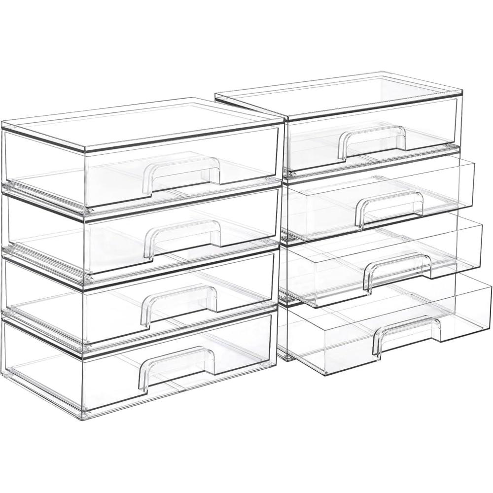 imageVtopmart 121W Clear Stackable Storage Drawers2 Pack Acrylic Plastic Organizers Bins for Makeup Palettes Cosmetics and Beauty SuppliesIdeal for Vanity BathroomCabinetDesk Organization8pack Wide