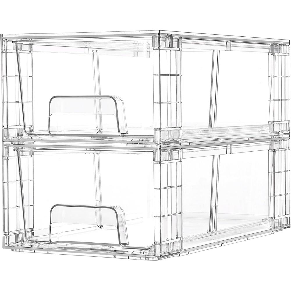 imageVtopmart 2 Pack Clear Stackable Storage Drawers97quot High Plastic Organizers Bins for Skincare Bathroom SuppliesIdeal for CabinetUndersinkVanityKitchenPantry Organization2Pack 7H