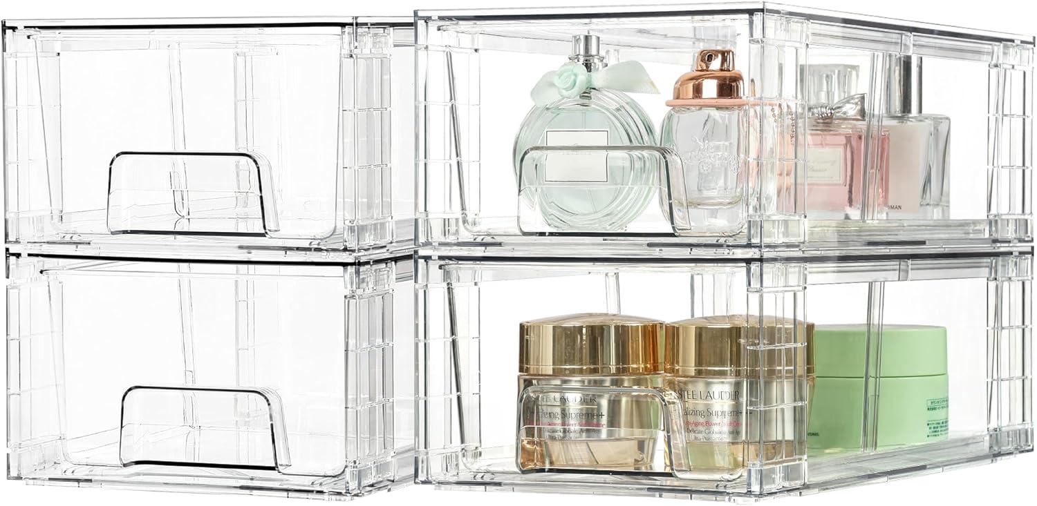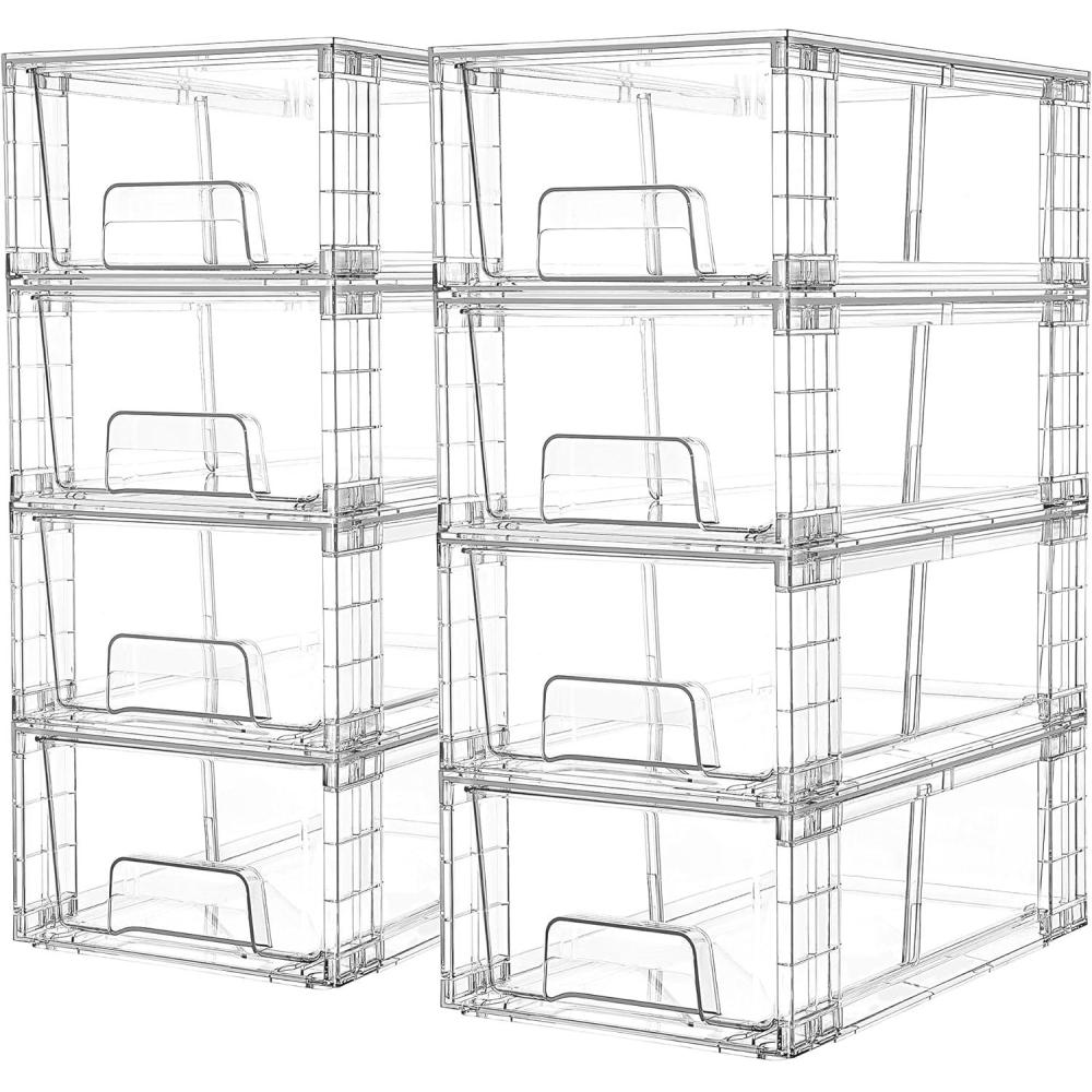 imageVtopmart 2 Pack Clear Stackable Storage Drawers97quot High Plastic Organizers Bins for Skincare Bathroom SuppliesIdeal for CabinetUndersinkVanityKitchenPantry Organization8Pack 44Hwith Dividers
