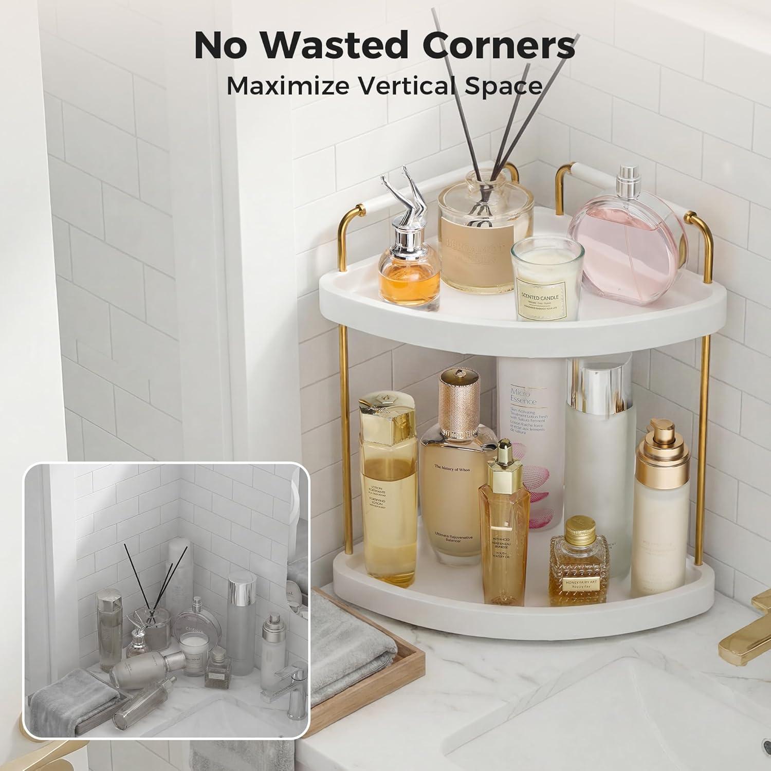 Versatile Countertop Organizer – This 2 tier countertop organizer are useful organization tools to declutter counters in your bathroom, makeup room, vanity room, powder room, kitchen, coffee bar, etc. The bathroom shelf organizer countertop can even be placed under the sink to organize messy items.