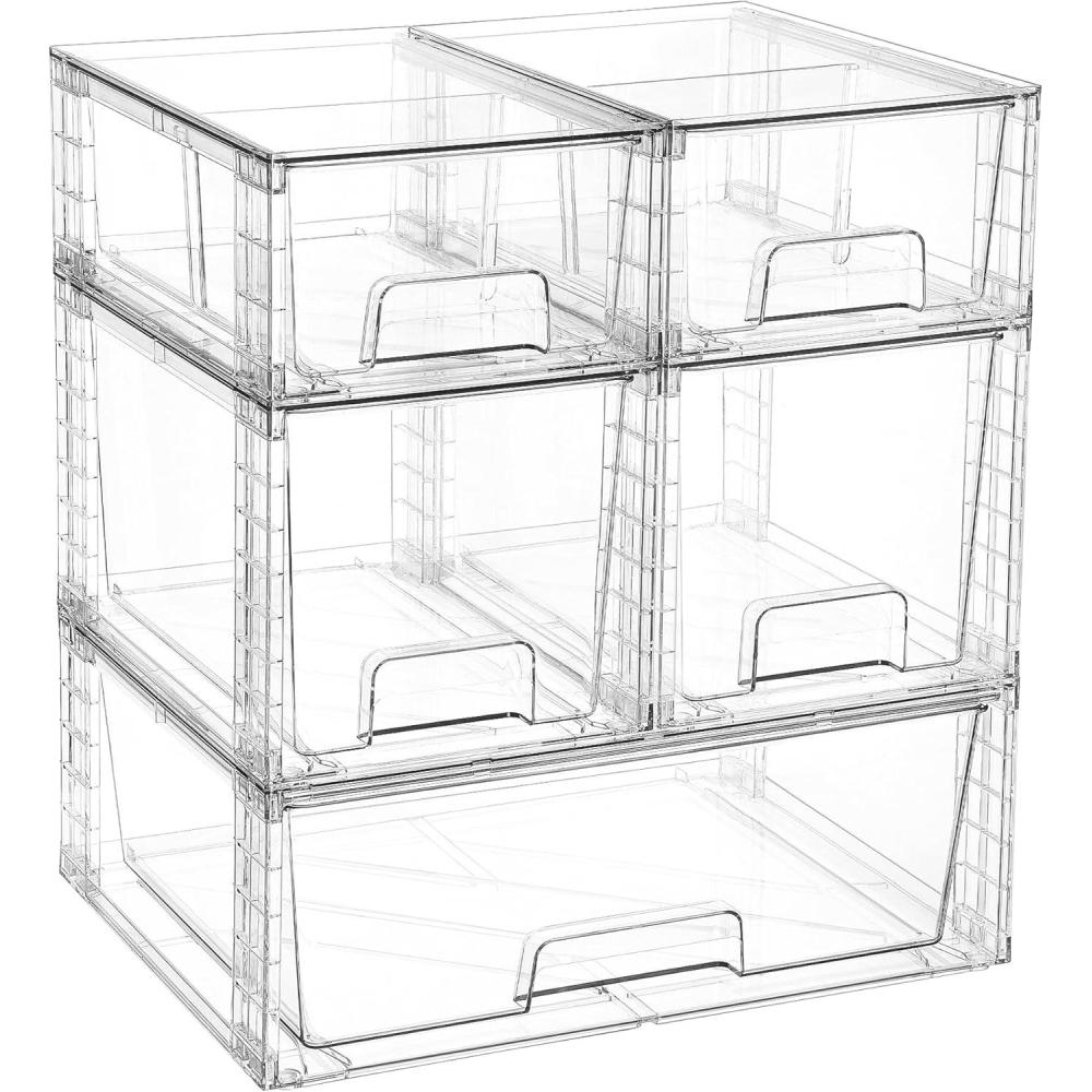 【Clear View & Durable】The storage containers are made of PET plastic. Visual organizer bins allow you to see the inside clearly and find the desired items quickly.