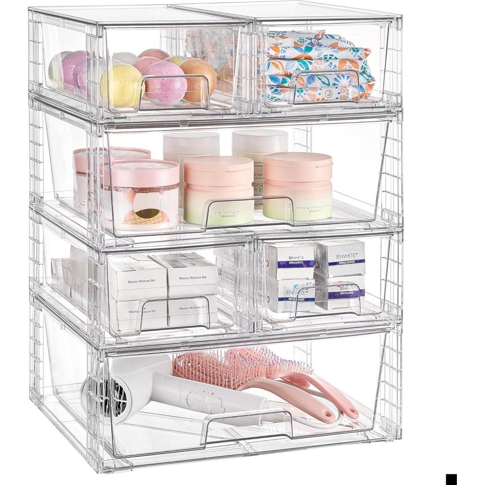 imageVtopmart 3 Pack Stackable Storage Drawers Easily Assemble Acrylic Bathroom Undersink OrganizersClear Plastic Storage Bins for ClosetCabinetPantryMedicine Organization4 Small2 Wide