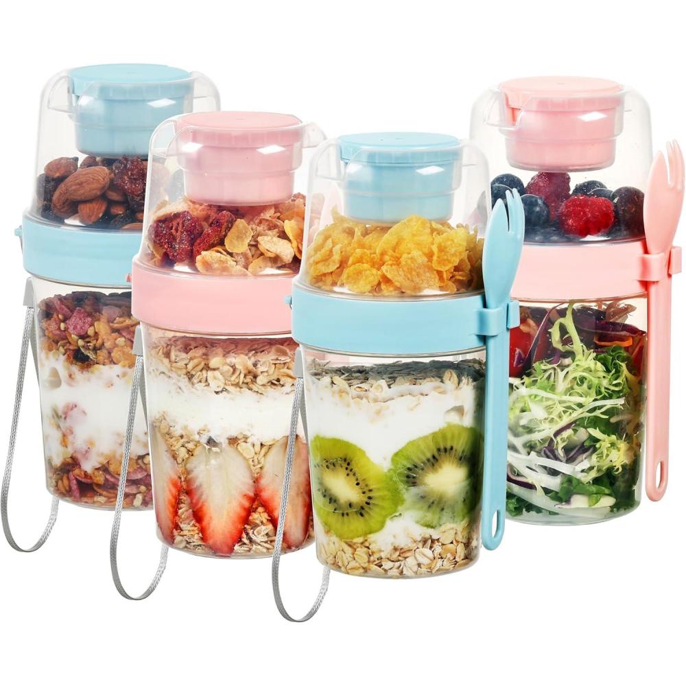 Layer Design: The yogurt parfait cup features two separate storage compartments, keeping wet and dry ingredients separate; enjoy your lunch or breakfast without worrying about soggy or mushy food