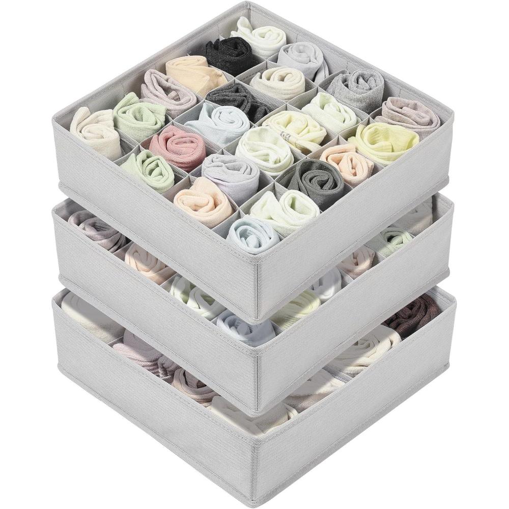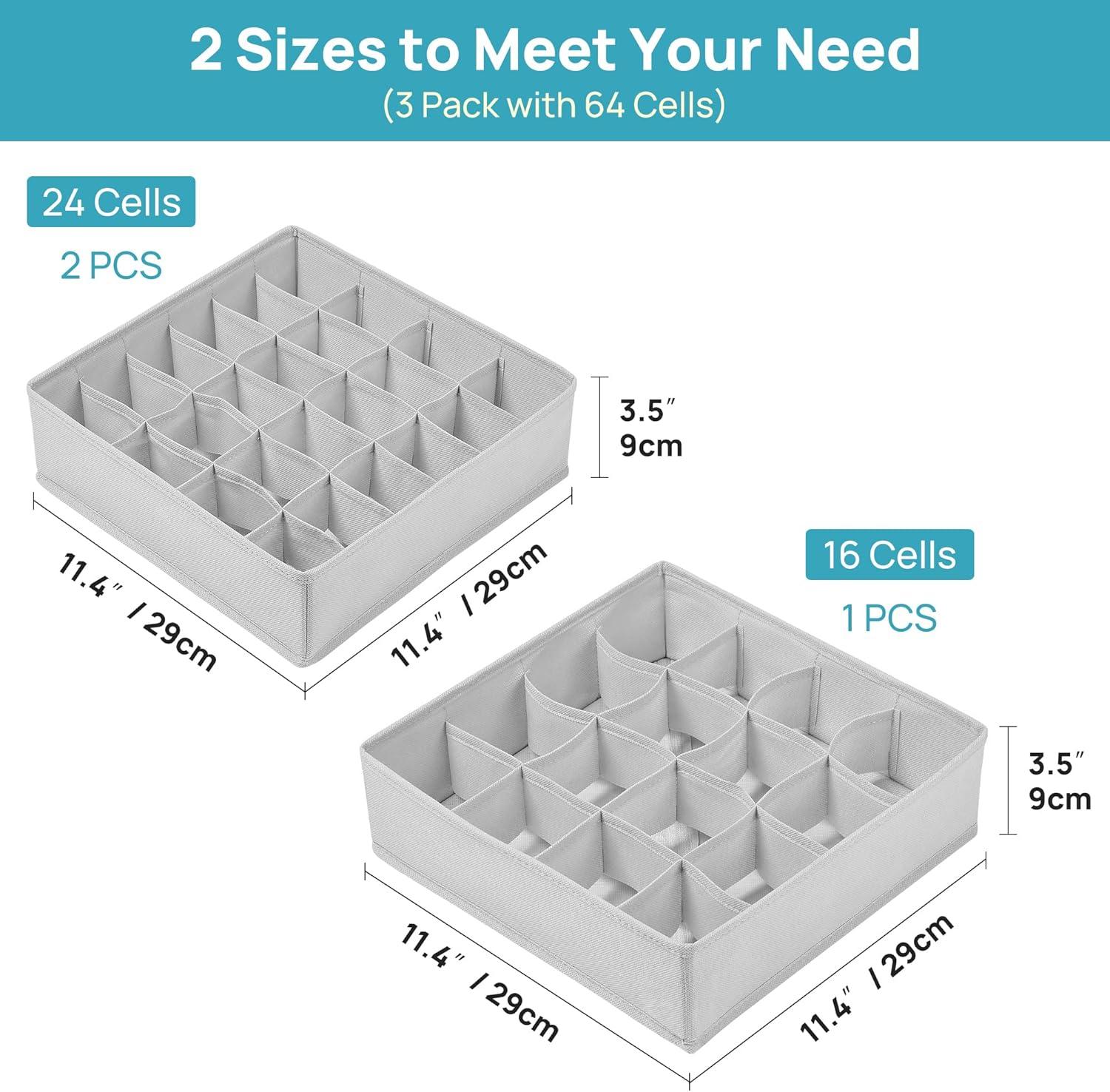 【Multi-Functional Compartment Design – Optimized for Every Item】Clothes drawer organizers feature smartly designed compartments to perfectly fit different clothing and accessories: 6 cell – scarves & layering tops; 7cell – bras & bralettes; 8 cell – underwear & briefs; 24 cell – socks.