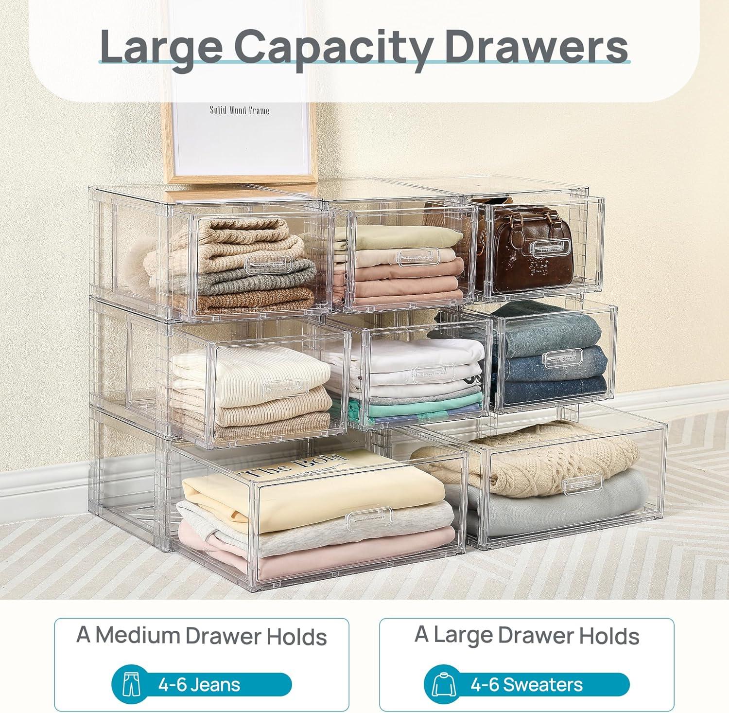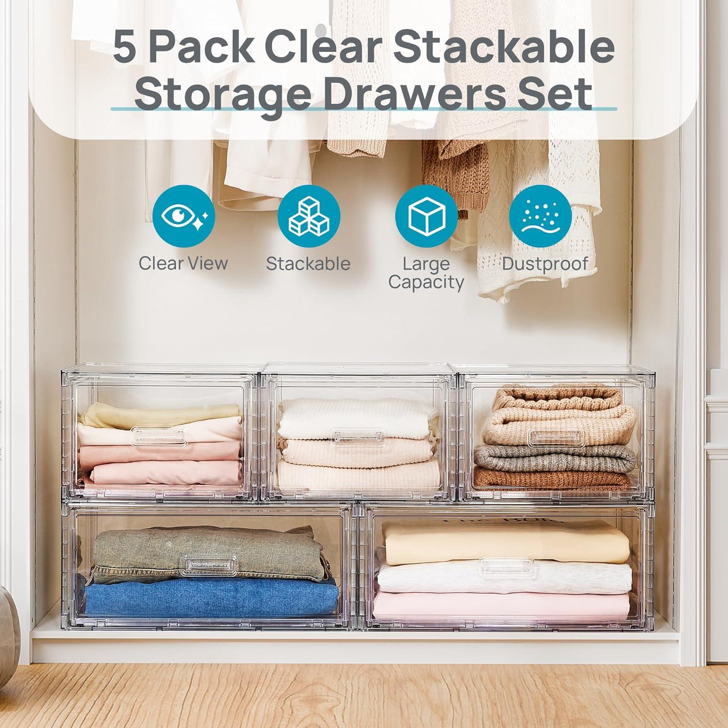 Vtopmart 5 Pack Large & Medium Stackable Drawer Organizer Set, 108QT Easy Assembly Clear Plastic Storage Cabinet, Durable Dresser for Closet, Bedroom, Entryway, Playroom & Apartment Organization(2pk Large)