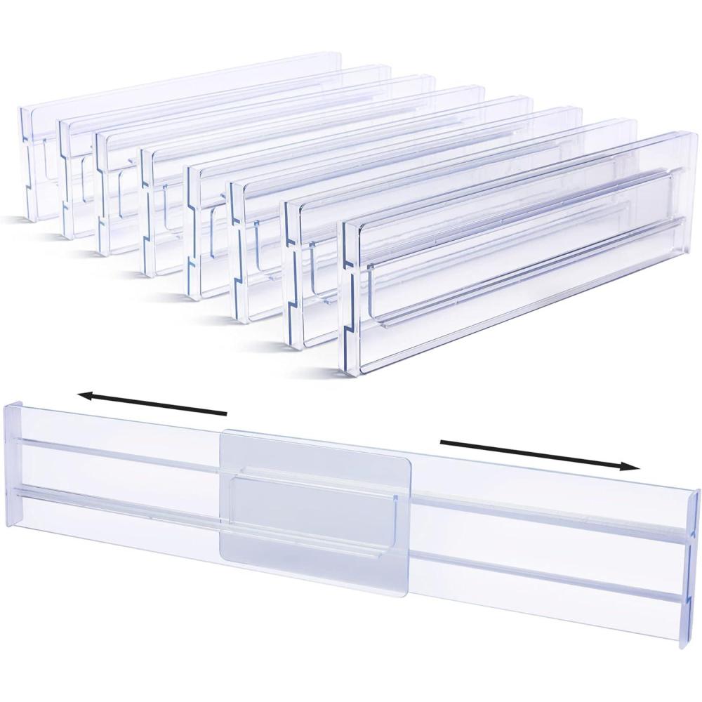 Get the Vtopmart Drawer Dividers Organizers 8 Pack, Adjustable 3.2" High Expandable from 12.2-21.4" Kitchen Drawer Organizer, Clear Plastic Drawers Separators for Clothing, Installed by Double-sided Tape you want at a discounted price during our markdown sale event.